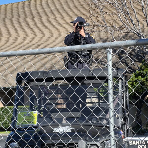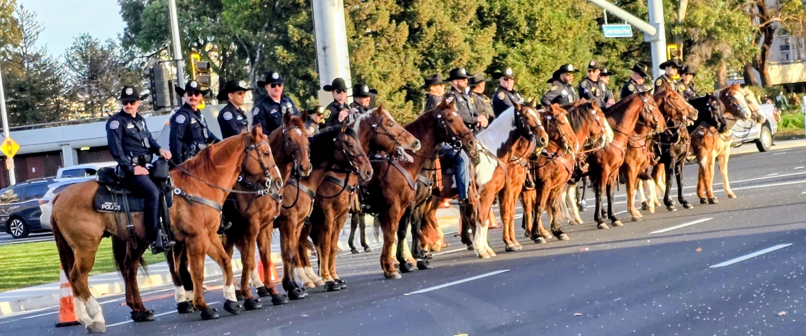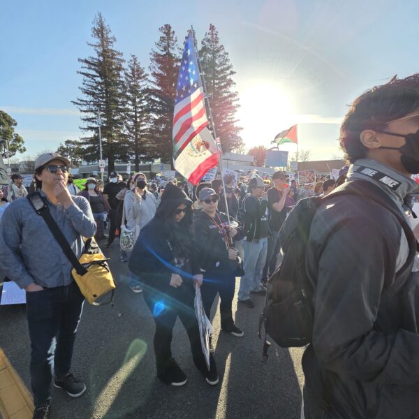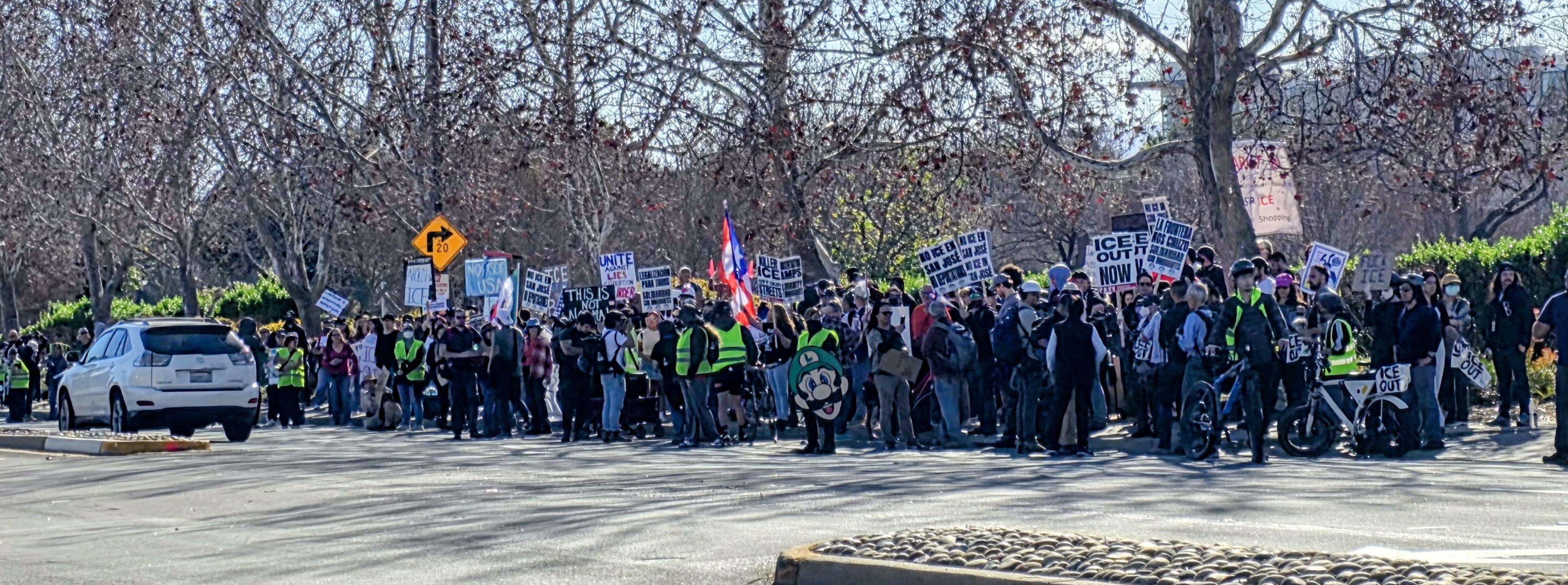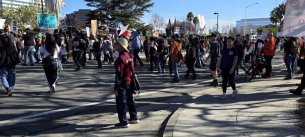 Police presence was over the top: Santa Clara police were there in large numbers, some on bicycles, some on motorcycles, some on foot. One was blatantly videoing us before the march began so.it was only fair for me to video him.